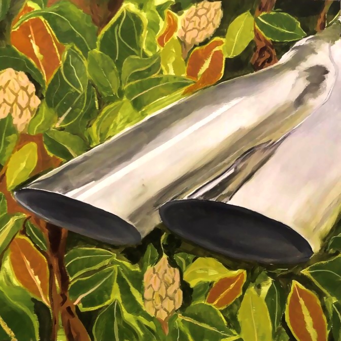 Eat Me (painted with spoon and fork) (oil on canvas, 16″ x 20″)